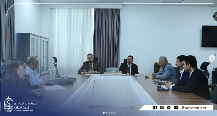 عُقد اجتماع برئاسة الأستاذ الدكتور علي عبد سعدون الغزي عميد كلية الطب في جامعة وارث الأنبياء (عليه السلام) مع الدكتور مصطفى الشافعي مدير مستشفى الهندية العام بحضور معاون العميد للشؤون الادارية الدكتور انور صادق الدهان و اللجنة التنسيقية المشتركة بين الجانبين لمناقشة آليات تطوير التعاون في مجال التدريب السريري والتدريب الصيفي لطلبة كلية الطب.