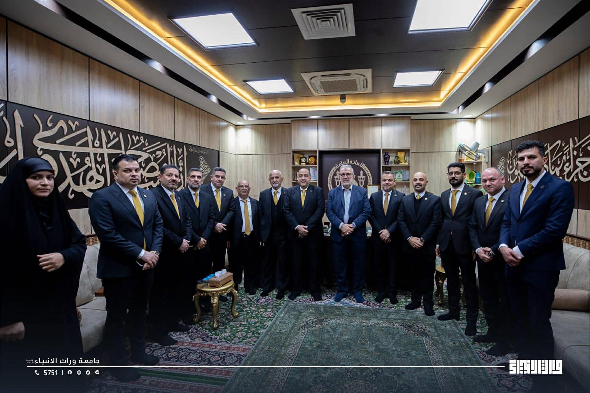 بدعوة كريمة من قبل الأمين العام للعتبة الحسينية المقدسة الاستاذ حسن رشيد العبايجي دام توفيقه" لمجلس جامعة وارث الانبياء عليه السلام"، وبحضور السيد رئيس الجامعة الاستاذ الدكتور ابراهيم سعيد الحياوي المحترم، كرم السيد الأمين العام دام توفيقه" مجلس الجامعة وبضمنهم عميد كلية التمريض