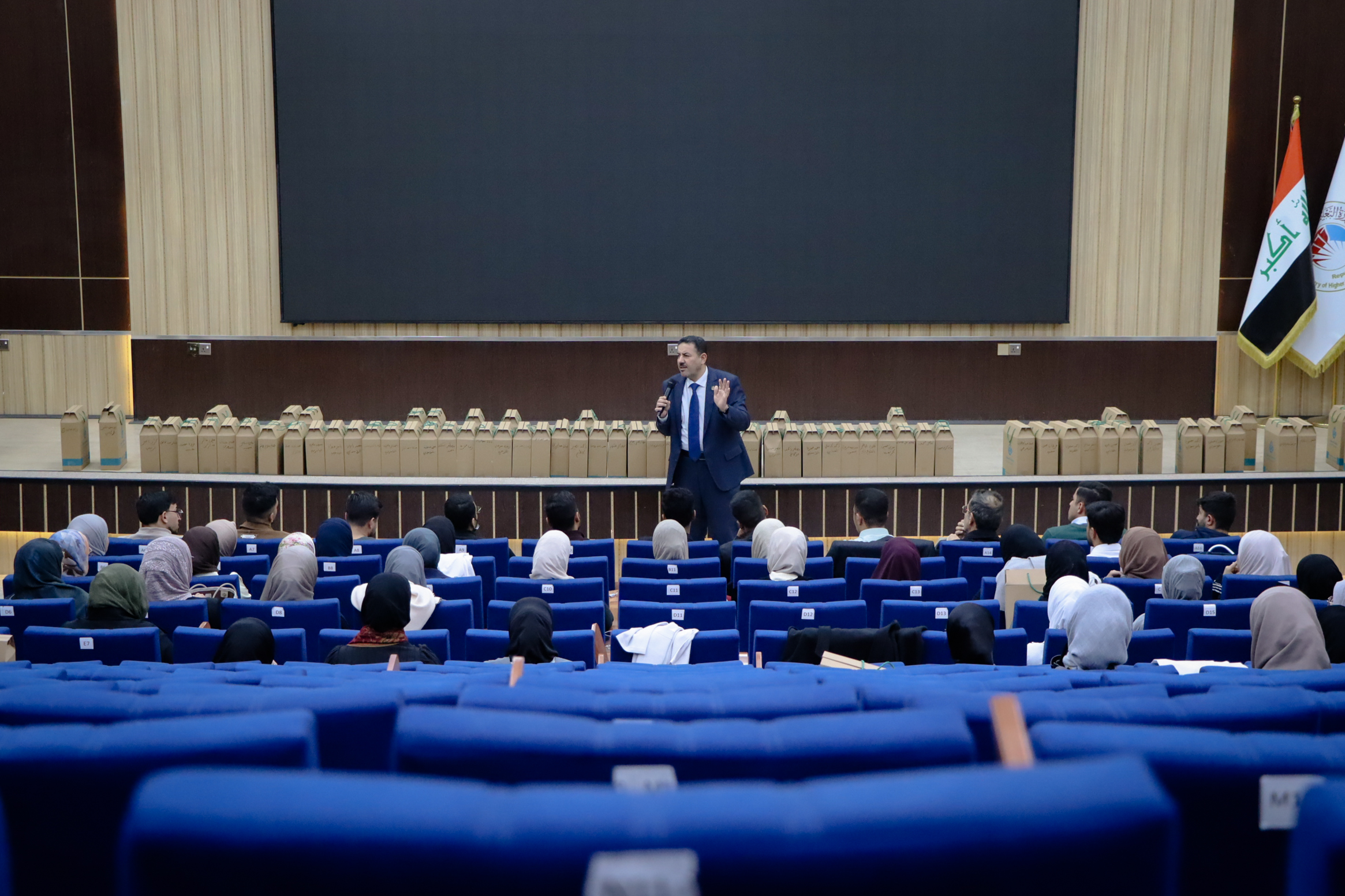 ألقى الأستاذ الدكتور عميد كلية الطب، علي عبد سعدون الغزي، يرافقه معاون العميد للشؤون العلمية، الدكتور علي عبد الرضا الغره، كلمة توجيهية لطلبة المرحلة السادسة بمناسبة تخرجهم، وذلك تزامناً مع تسلّمهم روب التخرج والقبعة.