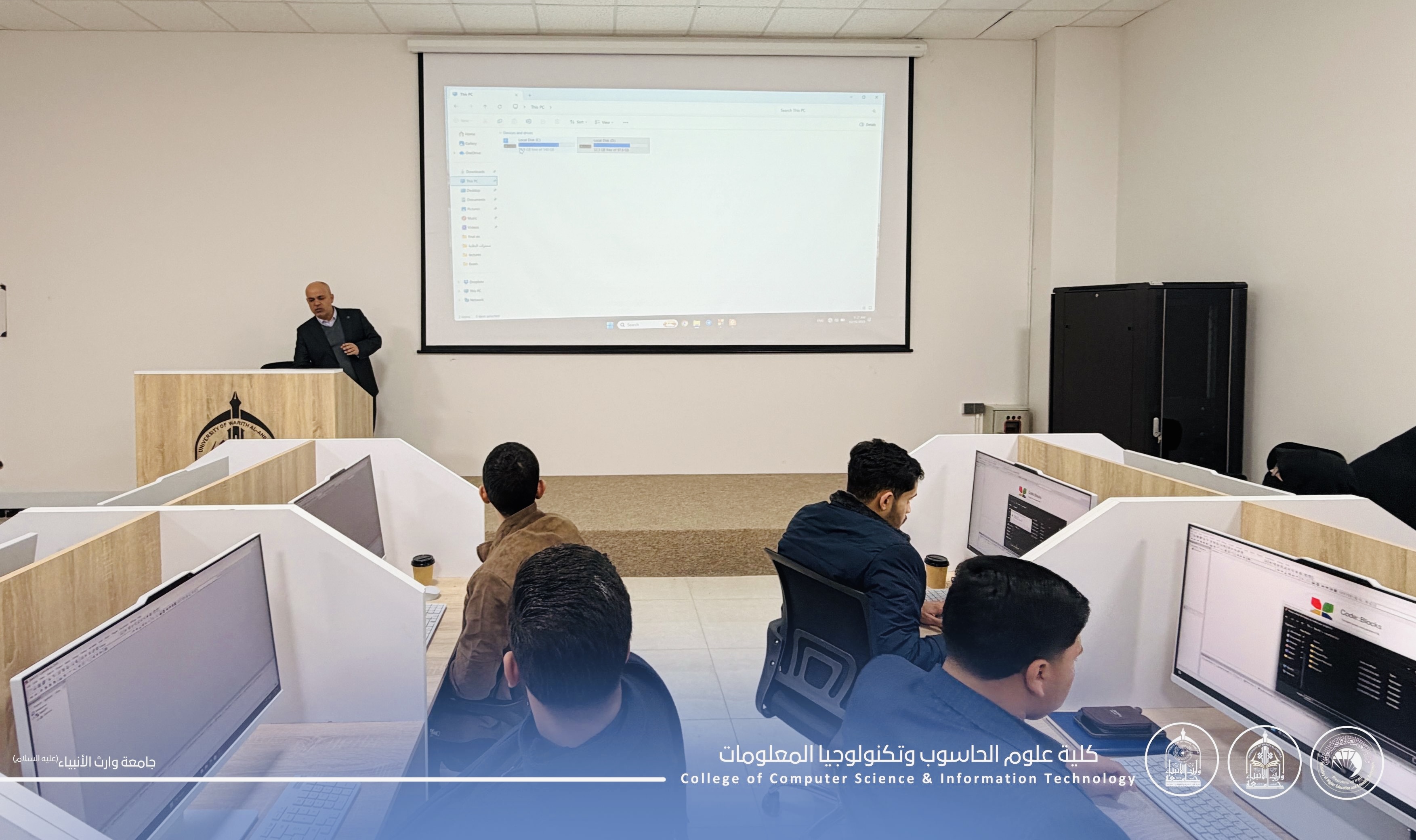 ضمن المحاضرات العملية لطلبة المرحلة الأولى في كلية علوم الحاسوب وتكنولوجيا المعلومات – جامعة وارث الأنبياء (عليه السلام)، يواصل الطلبة تطبيق مفاهيم