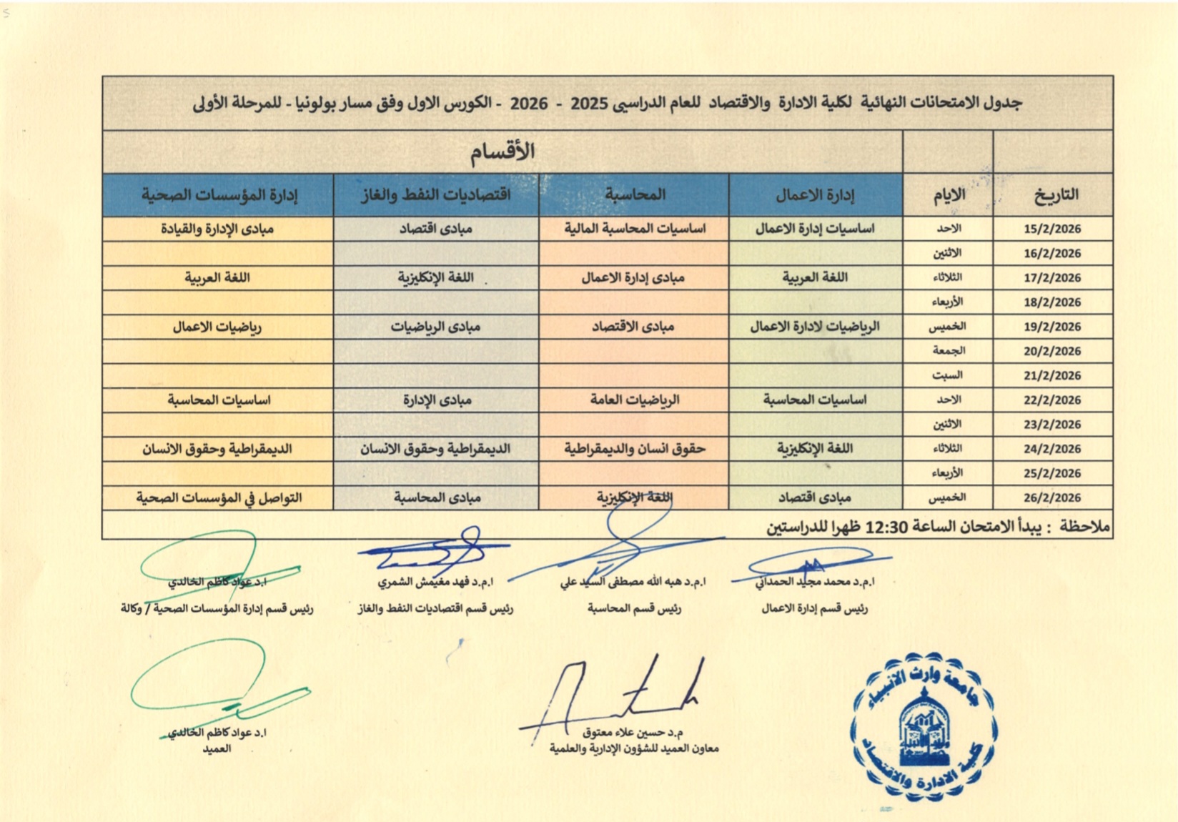 اكتشف مدخلات القبول والمعدلات المطلوبة لأقسام كليات الادارة والاقتصاد في جامعة وارث الانبياء (ع)