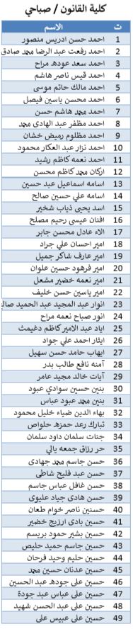 نتائج الهندسة المدنية للفصل الاول من العام الدراسي 2017-2018 (الدراسة الصباحية)