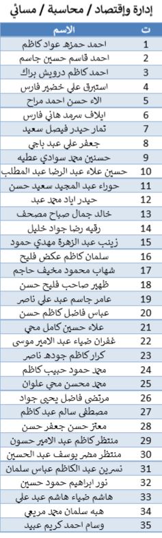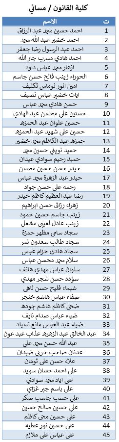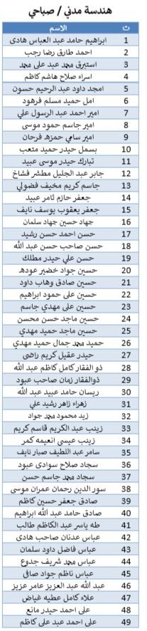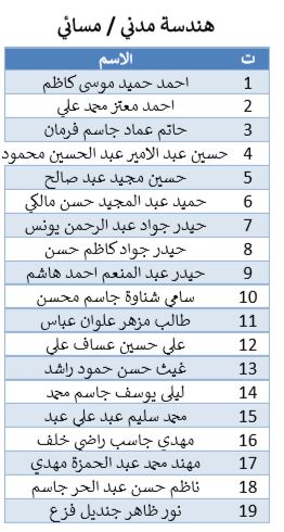 نتائج الهندسة المدنية للفصل الاول من العام الدراسي 2017-2018 (الدراسة المسائية)
