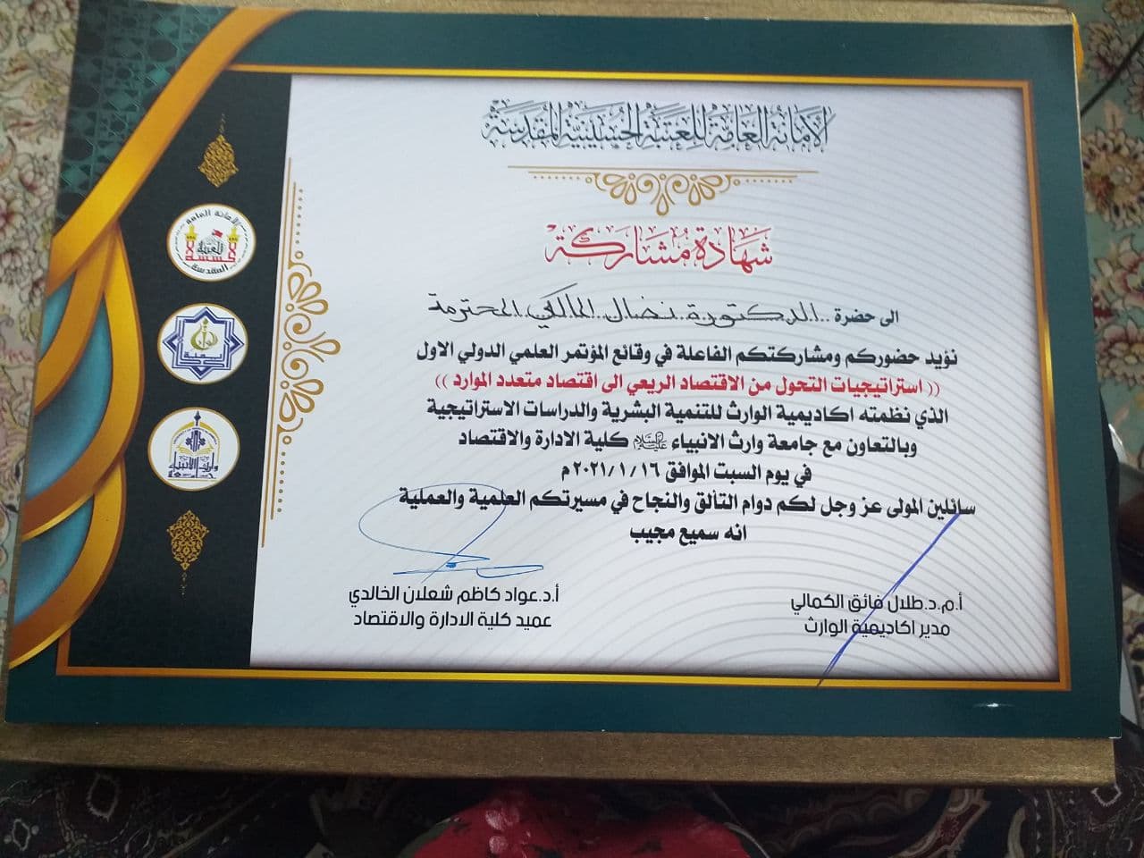 تكريم احدى التدريسيات في كلية الادارة والاقتصاد