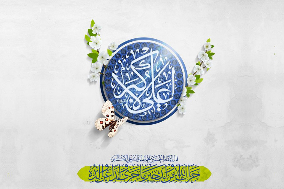 يا ابن الحسين الذي ترجى شفاعته وشبه أحمد في خلق وفي خلق اشبهت فاطمة عمرا وحيدرة شجاعة ورسول الله في نطق متباركين بمولد علي الاكبر (عليه السلام) أشبهَ النّاسِ خَلْقَاً وخُلُقاً ومَنْطِقاً برسول الله (صلى الله عليه واله)