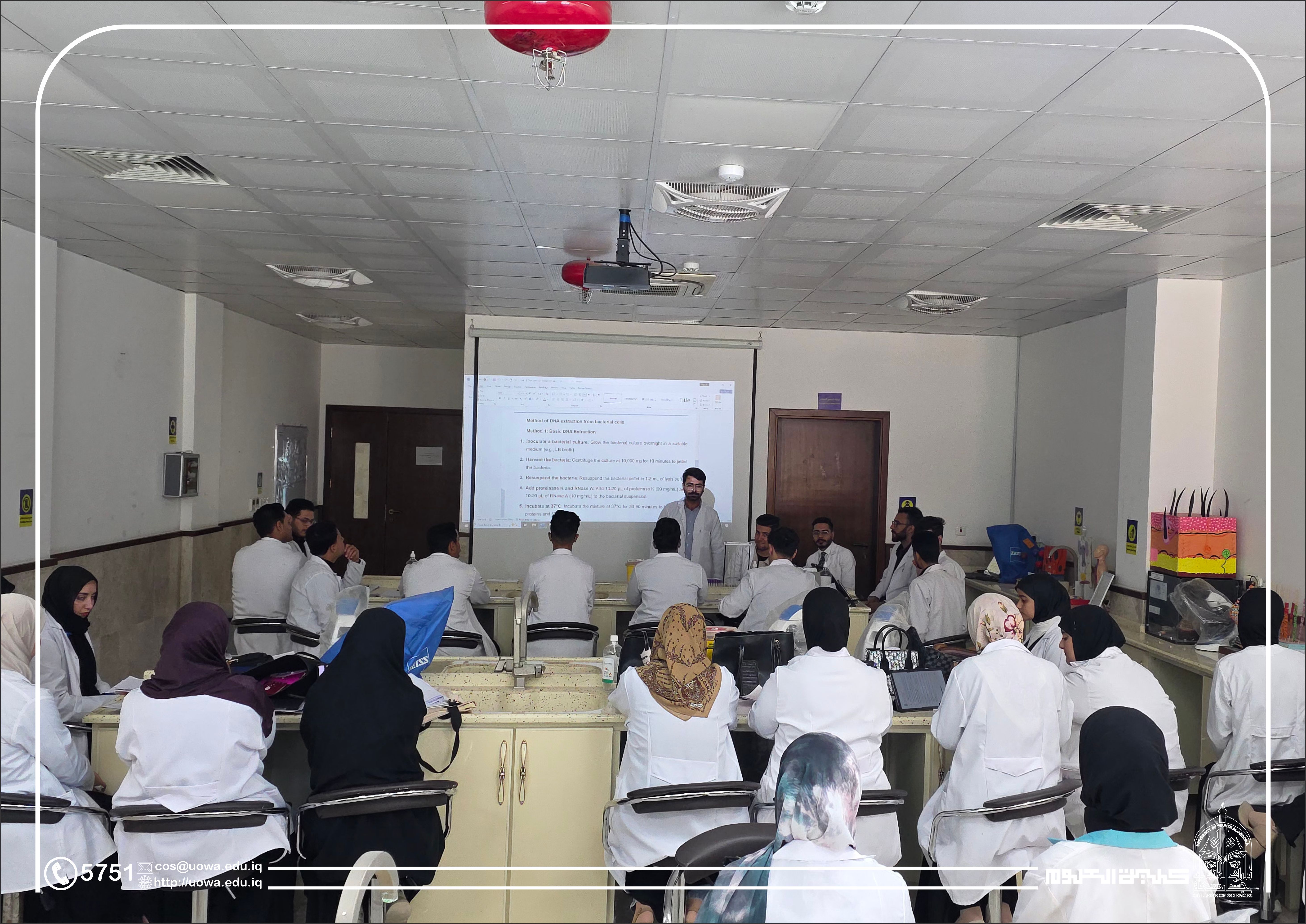 استجابةً للتطورات المتسارعة في مجالات التكنولوجيا الحيوية والتشخيص المختبري، وتحت رعاية عمادة كلية العلوم، نظمت الكلية ورشة عمل تخصصية بعنوان "الاستراتيجيات والتقنيات الحديثة في تشخيص الفيروسات" والتي القاها (م.م ختام محمد حمزة)، وذلك بمشاركة نخبة من الأساتذة والباحثين والمختصين في علوم الحياة والتقانات الإحيائية.