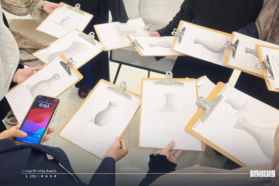 أقام قسم شؤون الأقسام الداخلية في جامعة وارث الأنبياء (عليه السلام) ورشة فنية بعنوان "تطوير مهارة الرسم" بالتعاون مع مديرية شباب ورياضة كربلاء / شعبة الثقافة والفنون، بمشاركة مجموعة من طالبات الأقسام الداخلية في أجواء فنية تفاعلية تهدف إلى تنمية المواهب وتعزيز الإبداع.