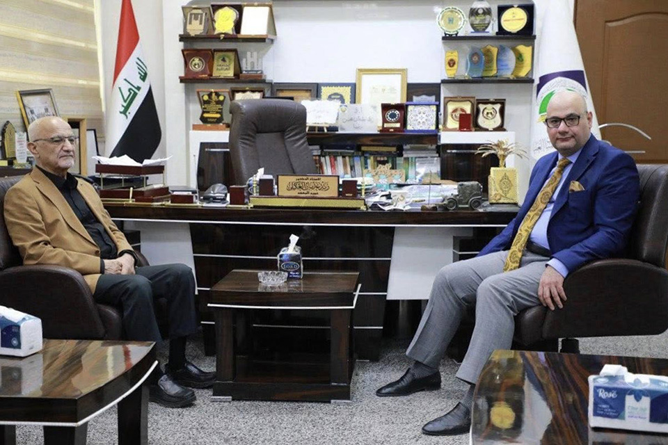 A delegation from the University of Warith Al-Anbiyaa, headed by the University’s Assistant President for Administrative Affairs, Dr. Nowfal Al-Araji, and accompanied by the Associate Deans of the Colleges of Administration and Economics and Law, visited Al-Alamein Institute for Postraduate Studies in the Holy City of Najaf.