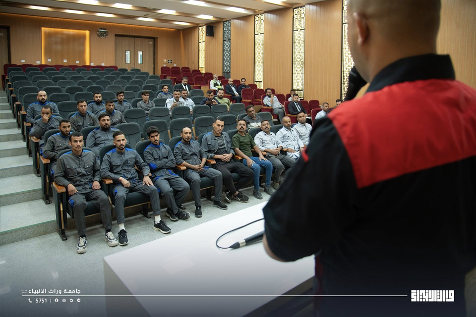 The University Affairs Department, in collaboration with the Campus Care Department at Warith Al-Anbiyaa University (peace be upon him), organised a training workshop on safety procedures and civil defense, aiming to raise awareness of preventive measures and emergency response within the university campus.