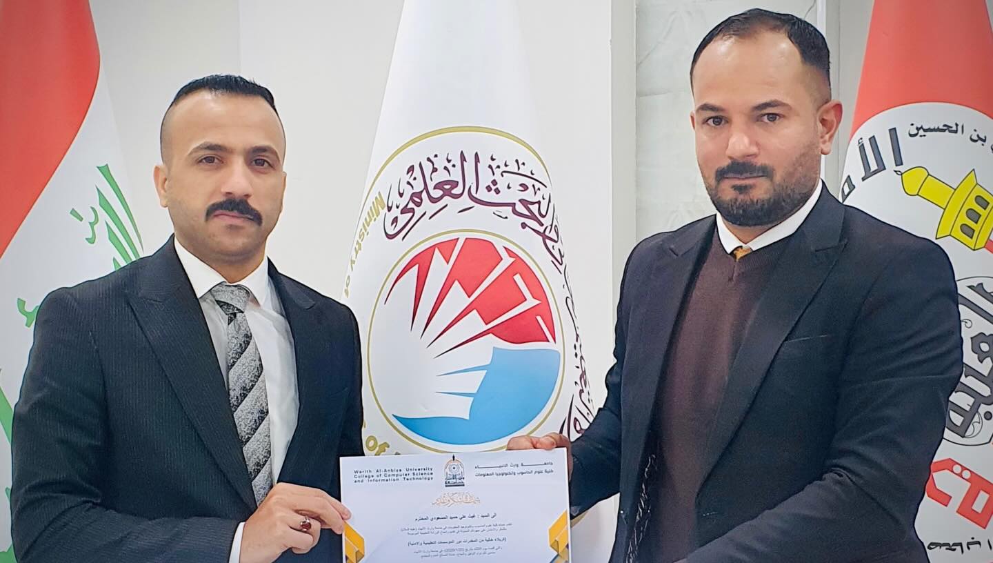 At the conclusion of the workshop, Assistant Lecturer Nabil Sadiq Abdul Abbas Al-Sharifi, Head of the Department of Information Technology, presented a certificate of appreciation to the training officer in recognition of his valuable efforts and effective contribution to spreading security awareness and preventive culture among our dear students.