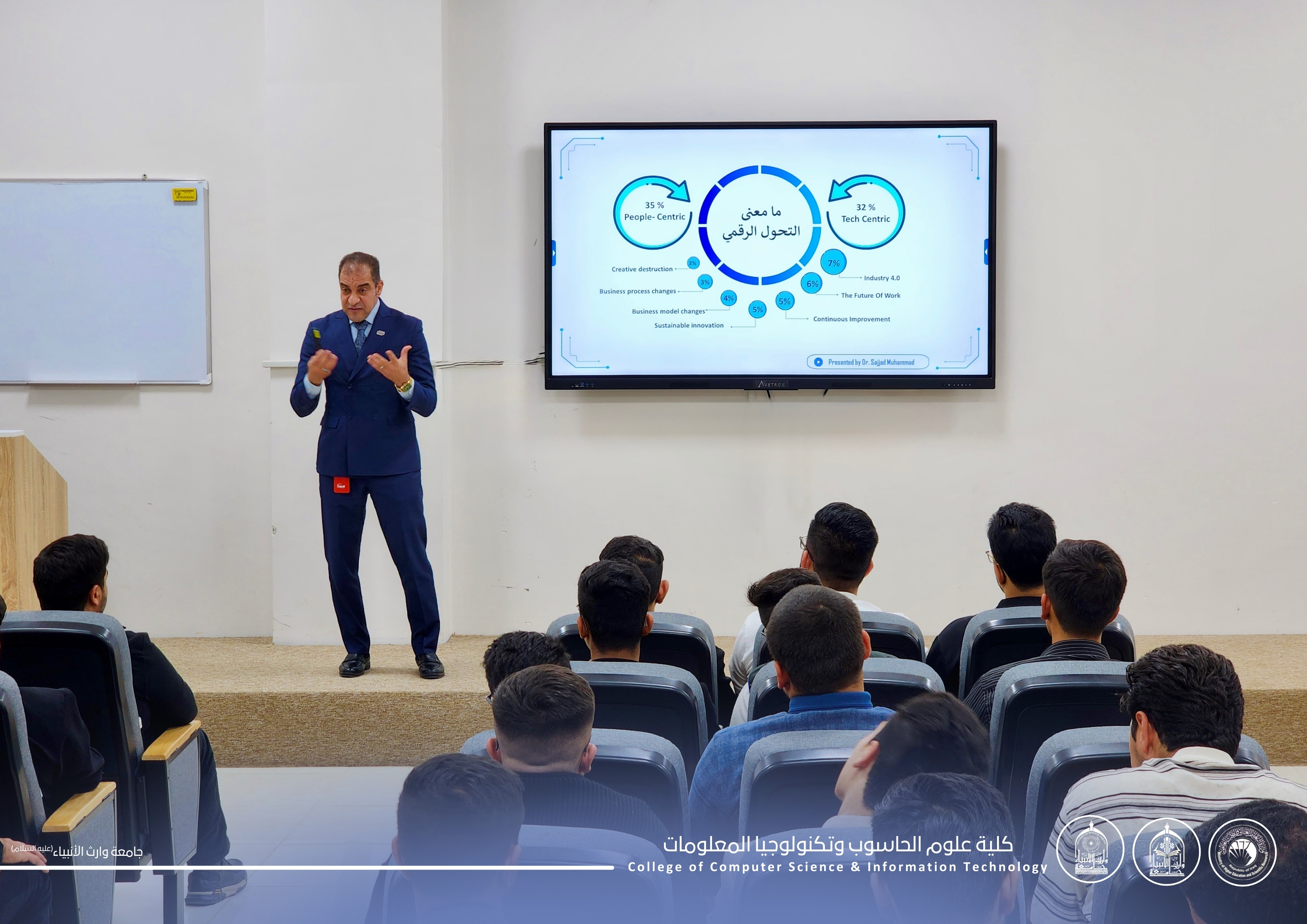 The workshop was delivered by Dr. Eng. Sajjad Mohammed Al-Karawi, who addressed the current state of the telecommunications market, the requirements of modern digital skills, and the importance of aligning educational outcomes with labor market needs.