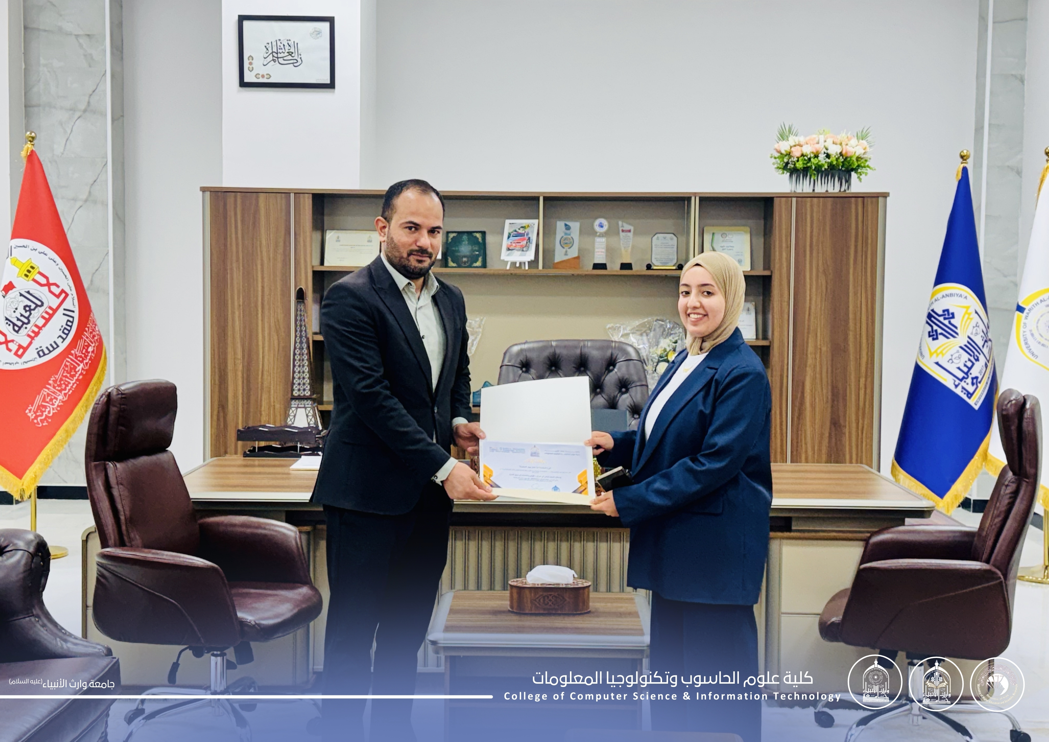At the conclusion of the workshop, Assistant Lecturer Nabil Sadiq Abdul Abbas, Head of the Information Technology Department, presented certificates of appreciation to the speaker and the supporting organization, in recognition of their role in supporting students and strengthening partnership with the private sector.