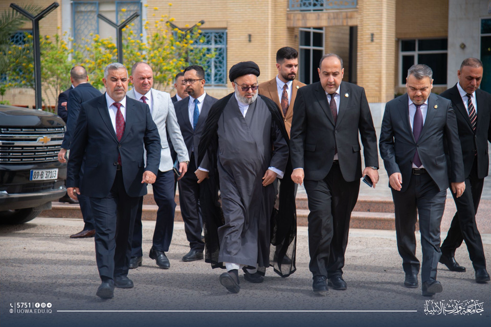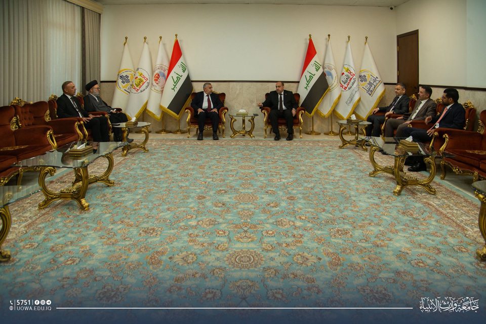 In a step aimed at expanding the horizons of academic cooperation, the Presidency of the University of Warith Al-Anbiyaa, represented by its President, Professor Dr Ibrahim Al-Hayyawi, received the Minister of Agriculture and Member of the Iraqi Parliament, Mr Abbas Al-Ulayawi, accompanied by adviser Dr Riyadh Abu Saeeda.
