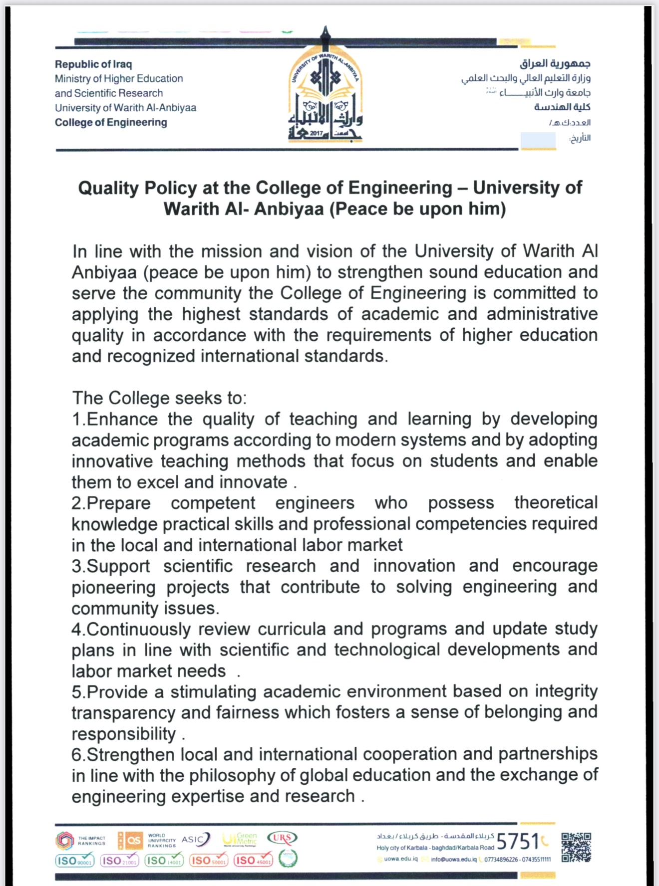 The University of Warith Al-Anbiyaa (PBUH) is committed to and abides by the following: