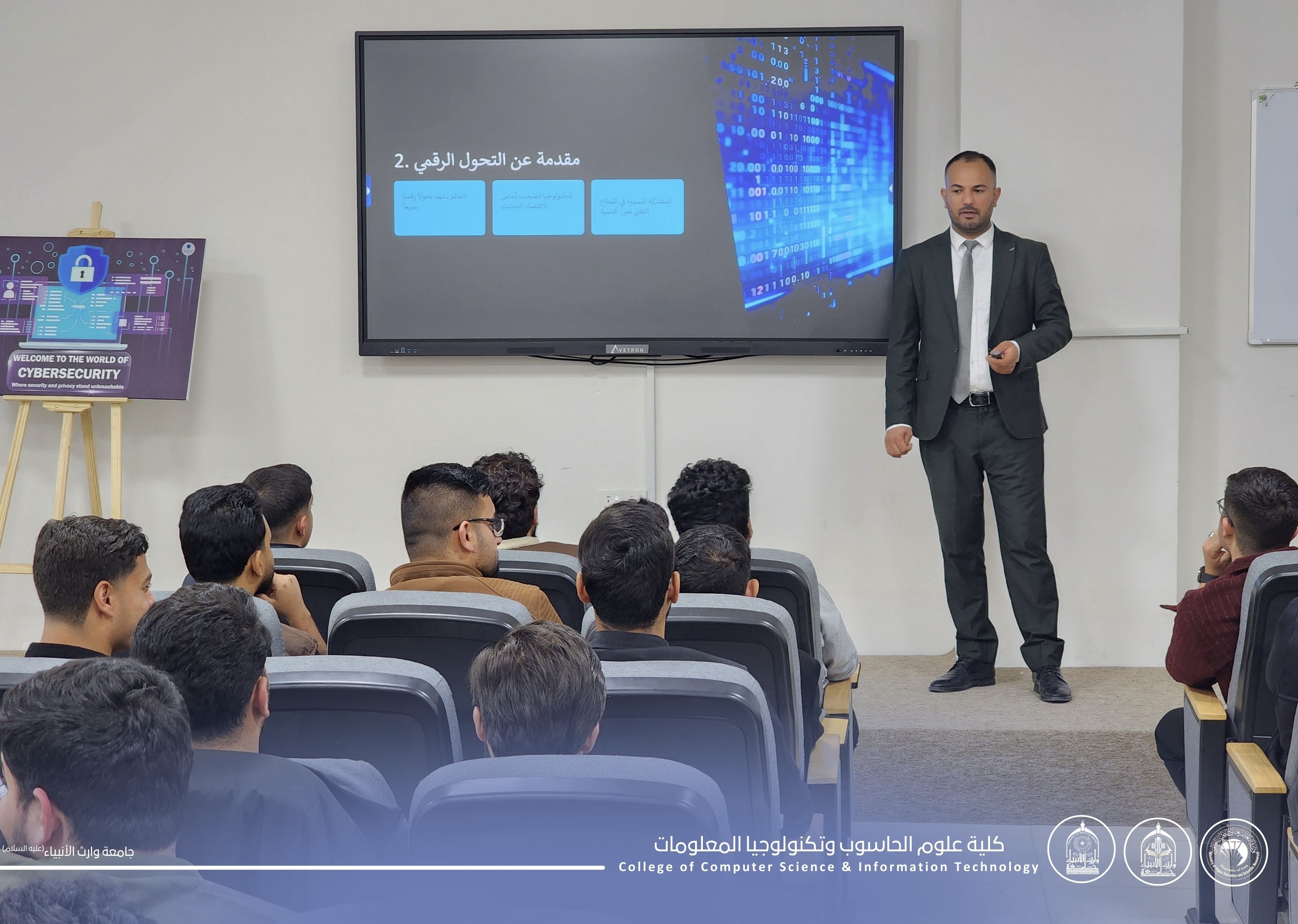 A scientific symposium titled "Source Documentation and Its Importance in Academic Research" was organized and presented by Dr. Iyad Al-Salahi. The session covered the fundamentals of academic documentation and the necessity of adhering to scholarly standards to ensure credibility and accuracy in research.