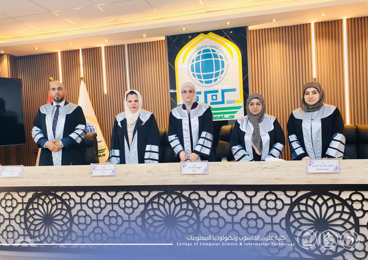 The College of Computer Science and Information Technology discussed the master’s thesis entitled “Generating Facial Expressions Images Using Generative Adversarial Networks.” The defense took place at 9:30 a.m. on Sunday, 15 February 2026, in Al-Khwarizmi Hall at the Deanship of the College, in the presence of the Dean, Dr. Mowaffaq Kadhim Al‑Hassnawi, along with a number of researchers and faculty members.